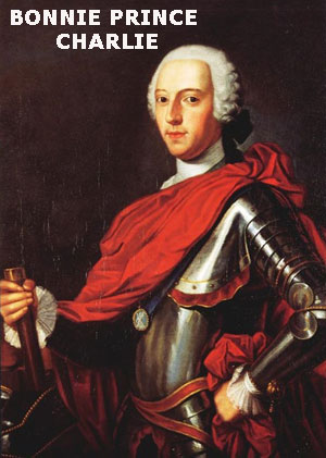 Charlie then marched south with an army of about 6,000 men. He captured Carlisle and headed down as far as Derbyshire (map again). So far, amazing. Then his advisors said they had heard government troops were coming north and they returned to Scotland. So far, back home again. Sadly his advisors had been correct and a government army, led by the Duke of Cumberland who was George II's son, caught up with them at a place called Culloden on 16 April 1745. In the battle, despite some strong fighting, the Jacobites and Charlie were defeated and Charlie had to run away to avoid capture and certain death.