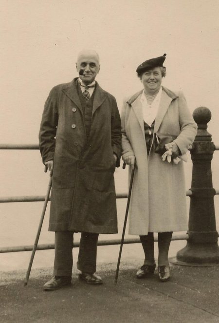 If you remember my grandfather had his own laundry business and pickets stood outside to stop deliveries coming in or out. His workers were well paid, well looked after and didn't want to strike. My grandfather came out and, dressed in his best suit, no doubt with a tie and the then-fashionable winged collar, drove one of the horse and carriages he still used for deliveries and collections through the picket line who all moved aside. His workers were then happy to enter and leave and business continued as usual. Bit of a determined guy was my grandad.The picture is him and my grandmother at the beach in the 1930s. Tie and winged collar even on holiday.
