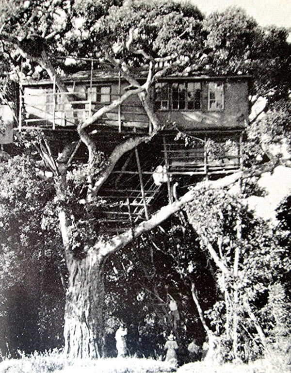 was at the Treetops Hotel in Kenya. She had gone on an overseas tour in His place as He was unwell. The rooms in the photo on the left are, I believe, where she was staying