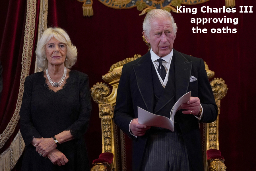 The Lord President then asked the new King to take certain oaths about His reign and he replied with the one word "approve".