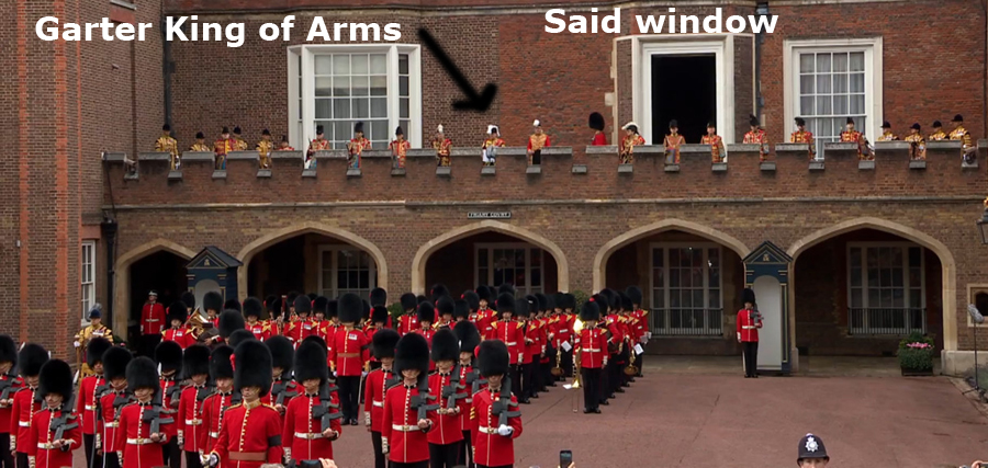 The final part of this ceremony occurs when the Garter King of Arms, England's senior herald, climbs through a window on to the balcony