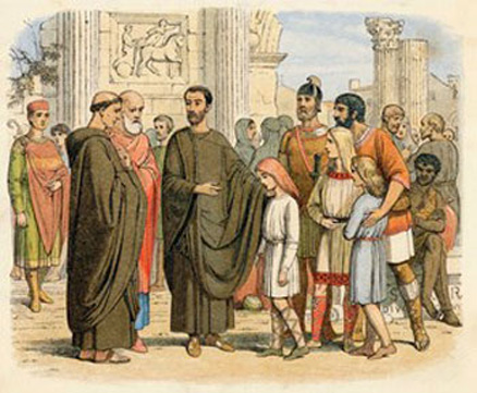 market in Rome, asked where they were from and was told they were Angles. As you may remember the Angles were one of the main tribes that had settled in England.