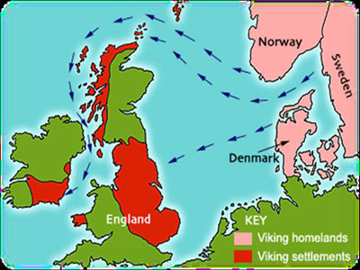 You may wonder why historians call them Vikings. Until now it has all been very obvious. Stone Age people used stone, Bronze Age people used bronze and Iron Age people used Iron. The Romans came from Rome, the Saxons from Saxony and the Jutes from Jutland but the Vikings did not come from Vikeland. In fact they came from what we now call Norway, Sweden and Denmark and were not one tribe but a mixture of many. The word Viking comes from the language known as Old Norse and means a pirate raid. And at this time, these people were doing just that. Oh and they didn't have horns on their helmets but some of them did have red hair.
